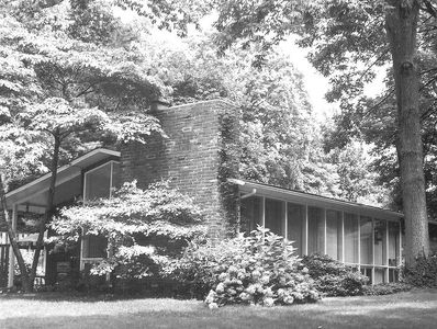 Charles Goodman’s signature “walls of glass” of asymmetrical window grids, and fireplace as sculpture reflect the optimism and openness of Mid-Century Modernism. His belief was that contemporary design should be accessible to a wide range of incomes. Charles Goodman focused on creating affordable cutting-edge modern homes in the post-war era. He chose materials, such as glass, and used them in new ways, incorporating nature. The design is still very viable today and remains in the price range of starter homes in Wheaton.